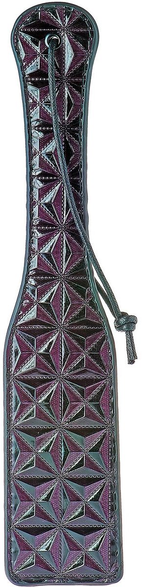| Verpakkingsinhoud | "Smooth and textured paddle. The exterior is embossed with a purple and black diamond pattern on one side, and a smooth neoprene on the other. The handle has a loop for hanging or to wrap around your wrist while you administer their punishment. " |