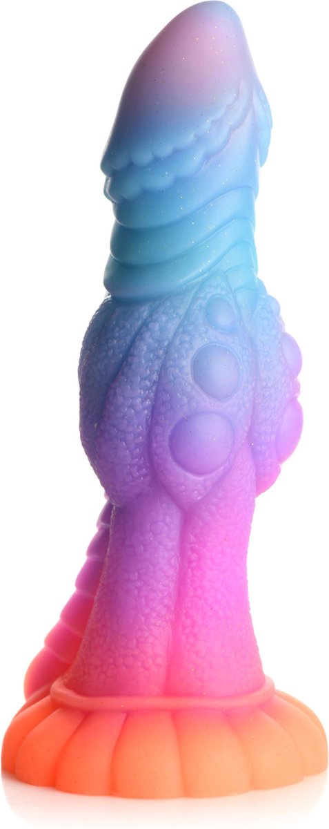 verken de intrigerende wereld van buitenaards genot met een opvallende glow-in-the-dark alienvormige dildo. Vervaardigd uit hoogwaardige siliconen, biedt dit unieke speeltje een onvergetelijke ervaring met zijn kenmerkende textuur en taps toelopende ontwerp. Deze dildo is zowel flexibel als ftalaat-vrij, waardoor je met een gerust hart kunt genieten. De sterke zuignap zorgt ervoor dat je het gemakkelijk aan elk vlak oppervlak... lees meer over dit product