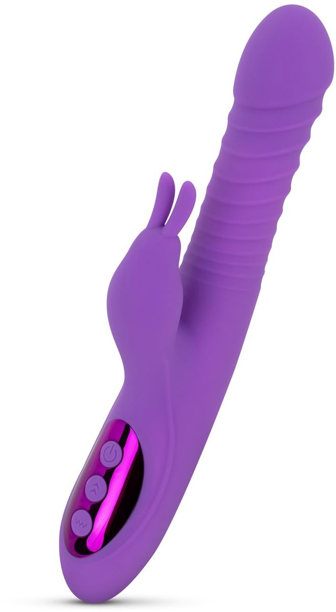 Dit is geen gewone Rabbit Vibrator! Met twee krachtige motoren die je afzonderlijk kunt bedienen, ervaar je precieze, op maat gemaakte stimulatie. Stel elke sessie helemaal naar wens af en geniet van wat jij op dat moment nodig hebt. De hoofdas heeft een stootfunctie met 10 verschillende standen, terwijl de flexibele rabbit-arm met 10 vibratiestanden je clitoris precies daar raakt waar je het wilt. Bovendien verwarmt deze Rabbit Vibrator tot lichaamstemperatuur met één druk op de knop, voor een nog intensere ervaring. Het speeltje is oplaadbaar en gemaakt van superzacht siliconen, voor een soepele en luxe beleving.