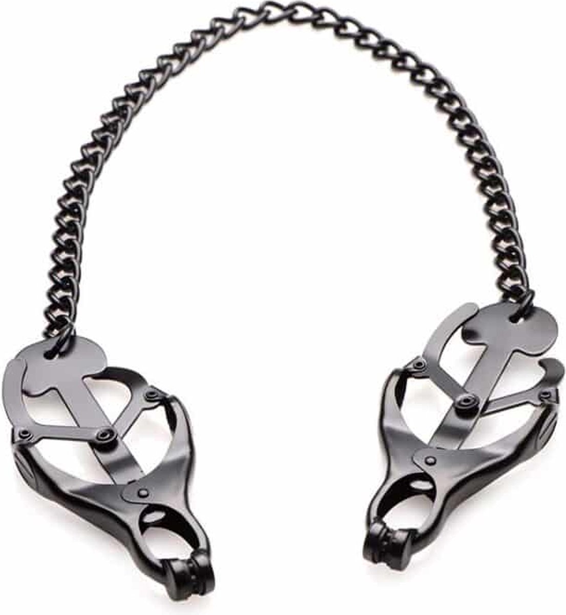 Oefen de ultieme macht uit met de Monarch Noir Nipple Vice van de Master Series! Deze tijdloze klassieker zorgt voor een lichte sensatie. Althans, totdat er aan de ketting wordt getrokken! Want dan maakt dat allerzachtste gevoel plaats voor een strenge bestraffing! Het klavervormige mechanisme zorgt voor een strakke en compromisloze greep op uitgerekend die zachte en tere plekjes. Hiermee krijg je je partner gegarandeerd onder controle. Of probeer eens een solospelletje!