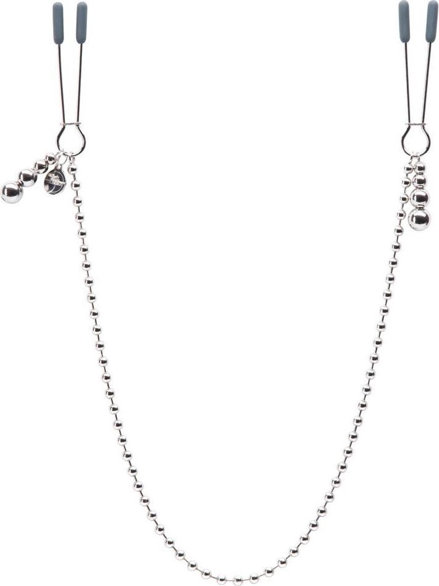 - Deze zilverkleurige tepelklemmen zorgen voor een knijpende, trekkende sensatie op de tepels.