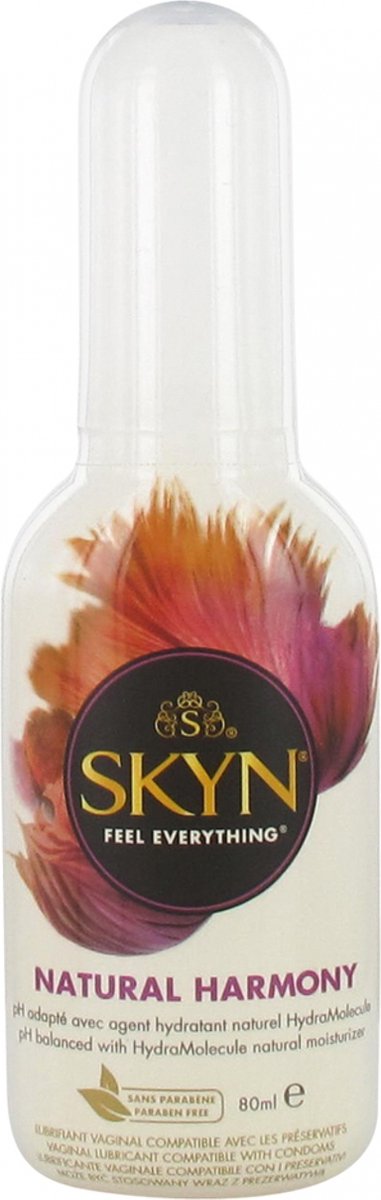 SKYN Natural Harmony gel is geformuleerd met Hydramolecule ?, een ultra natuurlijk hydraterend middel, hyper hydraterend en smerend, dat de huid herstelt en beschermt. De pH is aangepast in harmonie met de intieme slijmvliezen. Kleurloos Niet vettig / op waterbasis Plakt niet Compatibel met condooms Dermatologisch getest neutrale pH lees meer over dit product
