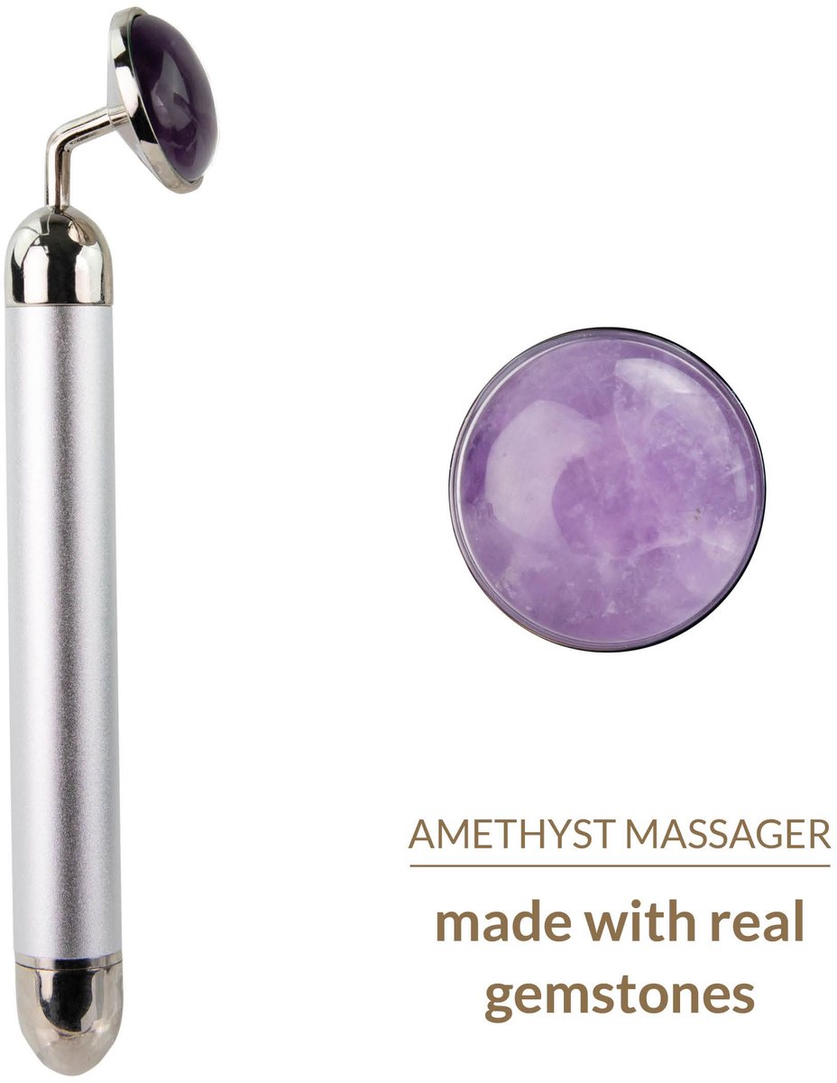 Prachtige edelstenen gecombineerd met fijne vibraties, dat is de nieuwe vibrerende massager van La Gemmes. Deze sjieke, elegante massager is een aanwinst voor je huid. Zachte trillingen, met de helende werking van de edelstenen verwennen je huid op een delicate manier.[MEER_INFO] Gebruik de massager op je gezicht voor een subtiele gezichtsmassage, het opfrissen van je teint door het stimuleren van de doorbloeding van de huid,... lees meer over dit product
