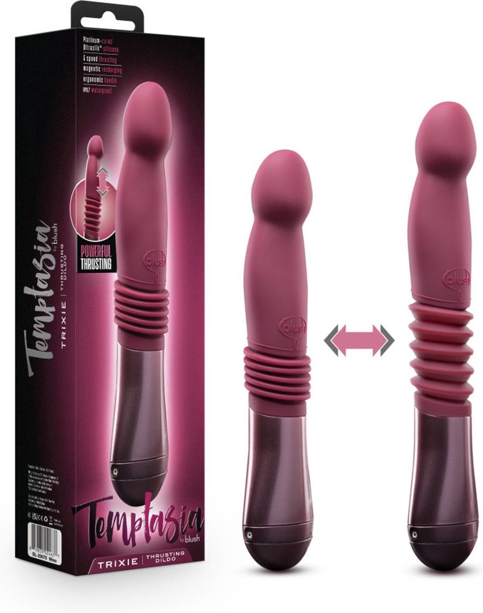 De Trixie dildo van Temptasia laat al jouw fantasieën tot leven komen! Deze bijzondere dildo kan namelijk een stotende beweging nabootsen waarbij hij oprekt van 25,5 naar 28,5 cm in 1 beweging. De schacht is voorzien van heerlijke stimulerende ribbels en door de gebogen top is hij perfect voor de ultieme G-spot stimulatie. Het handvat is ergonomisch gevormd en dankzij het ultra zachte Puria™ siliconen voelt de Trixie comfortab... lees meer over dit product