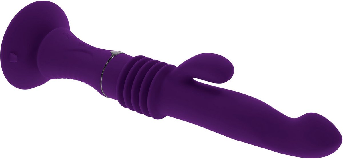 Ervaar onvergetelijk genot met deze krachtige stotende rabbit vibrator. Multi-speed vibraties pulseren door de hoofdschacht en bunny stimulator, en stimuleren je erogene zones terwijl het flexibele siliconenmateriaal meebeweegt met je lichaam. Schakel vervolgens de robuuste stootfunctie in die aanvoelt als de echte sensatie! Tot wel 2,5 cm stootkracht voor een diep gevoel dat je vult met een heerlijk tenen krullend genot. Ontspan je grip rond het getextureerde handvat of gebruik de zuignap voor talloze handsfree mogelijkheden.