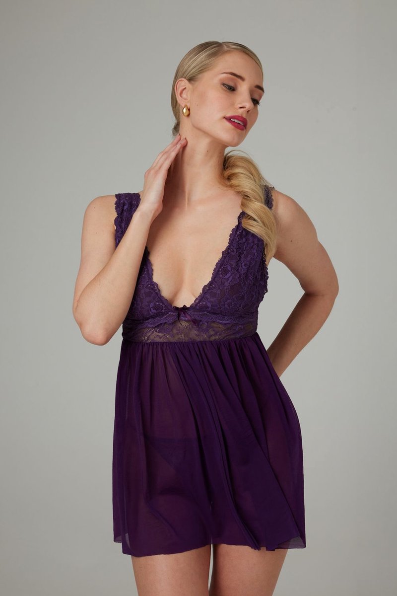 Babydoll & Thong Lieve - Paars
