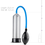 - Met knijpbal: Dankzij de handige knijpbal is het eenvoudig om je penis op te pompen. Knijp voorzichtig in de bal en zie je penis groter en groter worden.